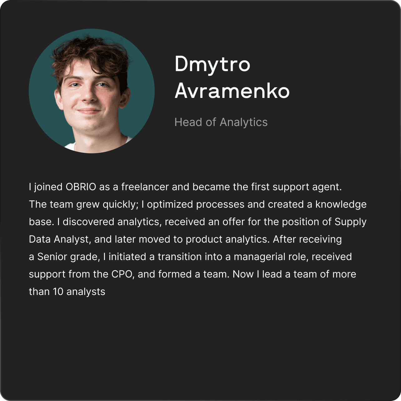 memorable. At OBRIO I started as