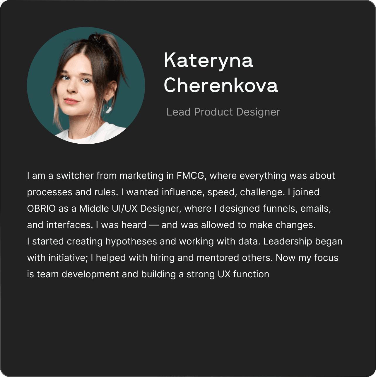 Before OBRIO, I worked as Head